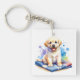 stil ai-konst med söt vattenfärg med en söt, liten nyckelring med vit labbmarig personlig.