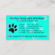 Hund Pet Grooming Design teal Gör att du kan trimma eller göra hund till en bra symbol med det här vackra affärskortet med teal och rosa tass avtryck. Perfekt för djurälskare, hund och tränare som äger butik. Den här leksaken tillför en del charm till ditt varumärke för professionell. Machen Sie Ihre Tierpflege- oder Hundeboutique mit dieser bezaubernden Visitenkarte, die türkis- und rosafarbene Pfotenabdrücke zeigt, unverwechselbar. Perfekt für Tierliebhaber, Hundetrainer oder Boutique-Besitzer, verleiht dieses verspielte Design Ihrer professionellen Marke einen Hauch von Charme.
