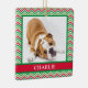 Den här vackra julprydnaden med din hund foto och namn på vit, röd och grönt schevron skulle vara så söt på din träd. Det är också en underbar gåva! Skaffa ett par till dina hund vänner och familj.