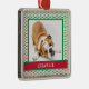 Denna vackra julprydnad med din hund foto och namn på vitt med rött och grönt polka dots skulle vara så söt på din träd. Det är också en underbar gåva! Skaffa ett par till dina hund vänner och familj.