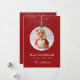 Den här mallen är ett modernt och elegant sätt att en Julhälsningar. Den har en ren, minimalistisk design med ett "julhelgsmeddelande" i söt kalligrafi på en röd bakgrund med snö. Lägg bara till ditt favoritfoto av hund och anpassningsbarna för att fylla i kortet.