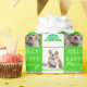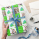Hund Puppy Pet 2 Foton Merry Jolly Julgran Wrapping Papper. Grönt och vit bakgrund med snöflingor och ett enkelt Julgran. White Merry, Lycklig, Jolly typography. Utformningen har 2 anpassningsbars foton av hundar - lägg i hund eller andra favoritfoton i mallen och gör så att personligens julklapp figursätts.