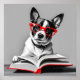 Svarta och vita Bild i en hund Läsning med ett färg stänk av rött glas ram i bok