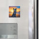 Hund sitta vid havsstranden vid solnedgång magnet