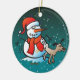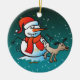 Hund som Peeing på en snögubbe! Julgransprydnad Keramik