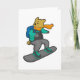 Hund som snowboardåkare med snowboard och ryggsäck kort