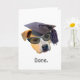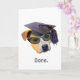 En hund med en studentmössa och en solglasögon med ord "klar" på det här roliga studenten-kortet. Klicka på Anpassa för att lägga till din egen ord.