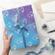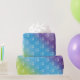 Vit hund i hjärtat på regnbågsbakgrunden.