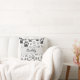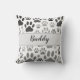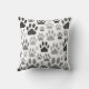Bilder i hund tass avtryck överallt. Anpassningsbar dekorativ kudde. Svart, vit och grått-design med tecknad stil hund-fotavtryck. Gift idé.