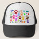 Bilder i hund tass avtryck överallt. Färgfull tecknad stil-design. Anpassningsbarnas truckerkepsar. Gift idé för hundälskare i alla åldrar.
