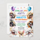 Hund Födelsedagsfest Inbjudan. För pojke eller flicka. Cute lycklig, en leende demonstrationsinbjudan designad med konetti och ballonger omgivna av populära små hundraser som shih tzu, pug, maltese, chihuahua, pudel och beagle. All redigerbar text med barnets namn, ålder, party, adress och OSA.