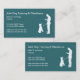 Affärskortmallen för instruktör för hund och överlydnad i en enkel utformning med bildsilhuett av en instruktör med en hund i utbildningsåtgärder och minimal textlayout som du kan anpassa onlinen. Skapat för en lydnadsklass, undervisning och utbildning för hundar.