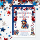 Det mest heliga patriotiska hundar under en patriotisk ballongbåge i rött, vitt och blått är grunden för denna "4:e juli" sällskapsvänliga, inga fyrverkerier "Barbeque" firande.