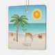 Desteis ursprungliga tecknad illustrerar en söt krona och vit färg-italiensk greyhound/Iggy-hund som står på en tropisk sommarstrand. På beige färg-sandan finns det en träd i handflatan, en rosa som är säsongsbunt med en stjärnfisk och en rödkrabba. Vatten är turkosblått med lite vinkart och sol lyser över horisonten. Det finns också ett textområde som kan anpassas efter namn.
