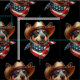 En Blue Heeler som porträtteras som en cowboypojke med läderhatt parade stylistigt med en USA-flagga bandana, förkroppsligade det amerikanska pridet och temat charm.