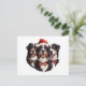 En illustration av en Bernese Mountain-hund klädd som Jultomten som cyklar. Perfekt för djurälskare och hund under julhelgen.