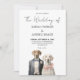 Kvistisk illustration av en rums hund i en elegant kostym och en bruds hund med en rosa båge