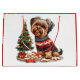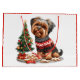 En illustration av Yorkshire Terrier Hundar redo till jul. Perfekt för djurälskare och hund under julhelgen.