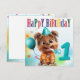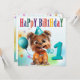 Söt Terrier i kalashatt med horn, firar en födelsedag.