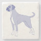 Klassisches Design in Blau-Weiß. Blaue Linienzeichnung der Hunderasse Boxer auf weißem Untergrund.