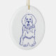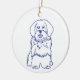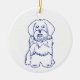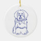 Klassisches Design in Blau-Weiß. Blaue Linienzeichnung der Hunderasse Havanese auf weißem Untergrund.