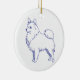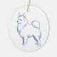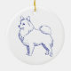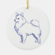 Klassisches Design in Blau-Weiß. Blaue Linienzeichnung der Hunderasse Spitz auf weißem Untergrund.