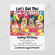 Inbjudan till hundens födelsedagsfest. Kan vara för en hundfest eller ett barns födelsedag. Fyra söta hundar sitter iförda festerhattar omgivna av färgglada ballonger - Låt Oss Få Igång Denna Paw-ty. Det kommer bli hundraxt underbart! Anpassa som du önskar.