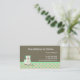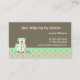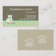 Visitkort för hundfotgängare och andra djuromsorga professioneller. Bryna och göra grön designen med fullständigt anpassadetext. Är den gulliga polkaen prack hunden hållande hans koppel och wagging hans svan.