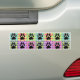 En färgrik hundmönstrad quilt. Ränder och fyrkanter i många färger. Helt digital bild. Anpassad bumperssticker för hundälskare. Gåvaidé.