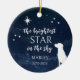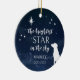 Vår minneskeramikprydnad för hundar är det perfekta sättet att hedra en älskad hund och vårda dess minne. Denna personliga minnesprydnad för husdjur har en siluett av en hund, en stjärnklar natthimmel och orden "den ljusaste stjärnan på himlen". Välj din favoritbild för baksidan och vi ser till att ditt husdjurs minne presenteras vackert. Lägg bara till ditt husdjurs namn, deras år (eller lämna tomt om du föredrar) och denna prydnad blir en hjärtlig hyllning som är unik för ditt husdjur. Oavsett om den visas på din julgran eller som en årlig minnessak, kommer vår personliga minnesprydnad för husdjur att ge dig tröst året runt. Håll deras minne levande på ett verkligt