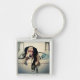 Hundportion ut med tvätta fyrkantig silverfärgad nyckelring