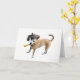 En honungfärgadhund med en partyblåsare ha på sig en svart studentmössa.