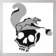 En grått-flygande ekorre som klättrar över en tippad svart skalle. Denna fula tittar gnagare har nått ut till klo mot en akorn. Munnen är oftast fylld med vassa tänder.