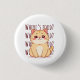 Tjock röd katt som ser hungrig ut, med texten ”Var är maten?”.