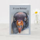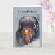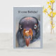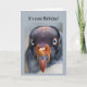 Ett humoristiskt födelsedagskort. En vultur svälter hungrigt.