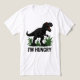 A fierce and funny T-Rex design with glowing red eyes and jungle leaves beneath its feet. Perfect for anyone with a wild sense of humor or a dino-sized appetite.