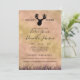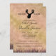 Elegant och Rustic, "Hunt är över" som jagar Inbjudningskort för möhippan. Hjortens troféhuvud silhouoette längst upp med orden "Hunt är över" som omger honom. Bakgrund är en himlar-gradient av pinkar och ljusbrun grädde. Rosa doe med en båge på hennes öra vid grund i en rosa av gräs. Både hjort och hand plockade av ©Tina Hesskew of Fishing Hunting Life.