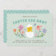 Vänner och familj i inbjudan till en jakt på Påskägg med den här söta och visemiska festinbjudan. Konstruktionens huvudsakliga fokus är den handritade illustrationen av en chick som kläckts ur ett ägg, omgiven av färgstarka blommor och löv. Kortets baksida har en enkel punkt mönster.
