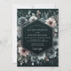 Embrace a mood of dramatic romance with this elegant artistic composition. Painterly botanicals in dusty blush, mauve, and cream emerge from a deep, shadowy hunter green background. This beautiful floral arrangement features lush roses and delicate anemones, creating an atmosphere of twilight sophistication for your special union.