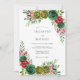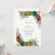 This design features a rich botanical arrangement of hunter green and cranberry red watercolor florals. Lush succulents and velvety roses are intertwined with delicate foliage and fern-stems for a sophisticated winter aesthetic. The vibrant jewel-tone palette evokes a sense of holiday elegance and timeless woodland charm.