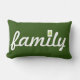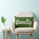 Grönt och vit "familjens" typografikudde med träd-accent över "i".