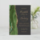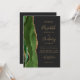 Den här elegantens lämnat kant har en modern bröllopsinbjudan med en grönt som är en som är en jägare och som är vattenfärgad i gräns som trimmas med faux guld glitter. Med anpassadet kombinerar du handskrift, formatmall och kursivt typsnitt i guld-färgad med en bakåtriktad bakgrund. På baksidan finns utrymme för information om bröllop på en solid mörk-bakgrund, tillsammans med en QR-kodgäst som kan söka på webbplatsen och OSAN, vilket sparar kostnaderna för utskrift och utskick av separat OSA kort.