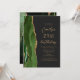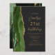 I det moderna födelsedagsfest inbjudan-kant som lämnas i eleganten finns en vattenfärgad grönt i jägare i gräns som trimmas med guld faux glitter. Anpassadet kombinerar skript av guld-färgad och sans serif typsnitt på en svart bakgrund. Den omvända sidan har en matchande grönt och guld agate-design.