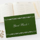 Vita vinstockar på grönt. Lägg till namn i händelse och datum i ryggrad om du vill. Trippelkontrollera all stavning och data.