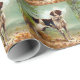 Hunter hund med fågel i munnen. Färgfull vintage teckning. Uppfödning med färgad jägare päls