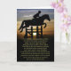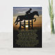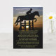 Ett vackert minneskort för en älskad häst. En dikt i andlig "Fria för evigt" och en häst och en förare som hoppar över påsarna vid solnedgången.