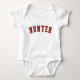 Hunter! Är ditt namn Hunter? Eller har du en fru, flickvän, kvinnlig familjemedlem eller kvinnlig vän vid namn Hunter? Om så är fallet är den här skjortan precis den gåva du är tittar för! Konstruktionen har "Hunter" med bågformiga röda bokstäver över bröstet i klassiskt College-teckensnitt.