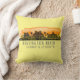 Huntington Beach, CA city silhouette med latitud- och longitudkoordinater och en orange sunset water color tvättar på gultens bakgrund.