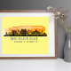 Snyggten poster Huntington Beach, CA city silhouette med latitud- och longitudkoordinater och en orange sunset water color tvättar på gultens bakgrund.