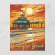 Hämta Huntington Beach-maskinens tidslösa charm med det här nedladdningsbara poster vintage resor. Den här vektorkonsdesignen visar Huntington Beach's ikoniska surfa scen, perfekt för att lägga till en liten bit av retro California stil i ditt hem.